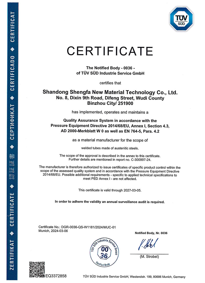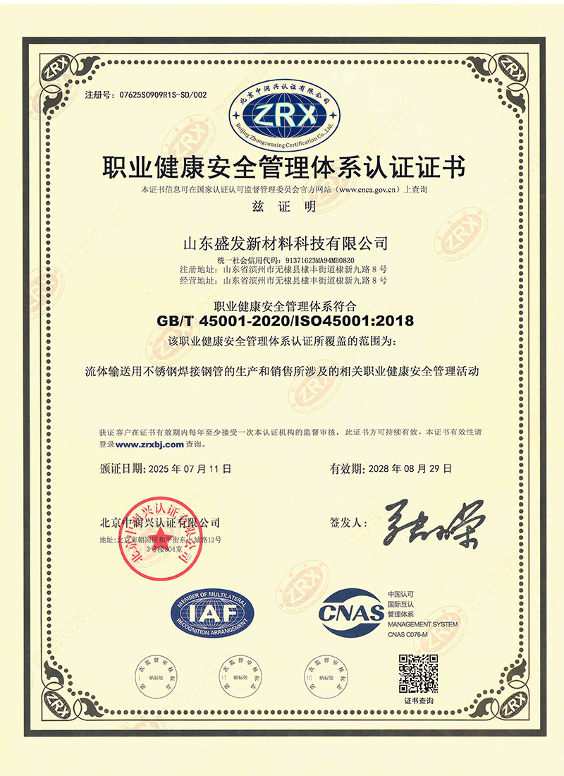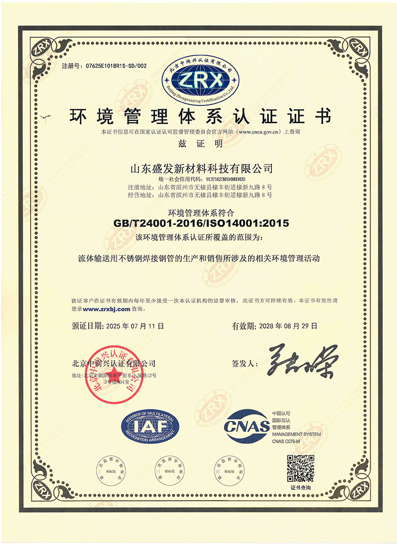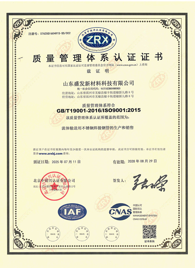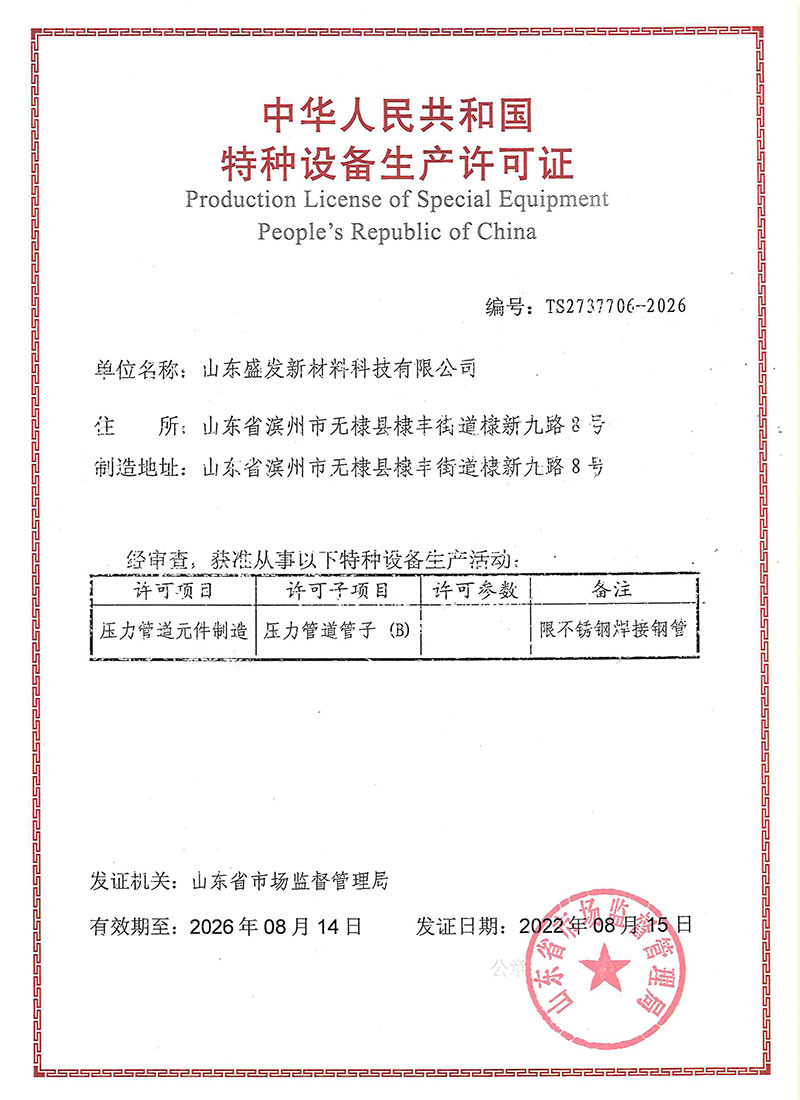 项目投资2500万元,新上8条智能全自动精密全工艺焊管生产线,主营“盛发”品牌全工艺不锈钢管:工业配管用钢管、一般配管用钢管(饮用水管)、机械构造/流体输送管、锅炉,热交换管、食品卫生管,石油,化工、造纸、核能、食品、饮料、医药,污水处理,制药厂,机械结构用管、城市景观、装饰装潢,卫浴家居、橱柜、室内管线、热水器、锅炉、浴缸、汽车配件 建材、食品工业、农业、船舶部件等等,可生产从ø10到ø426毫米直径范围的不锈钢管材产品,产品覆盖国标、美标、欧标、日标各种标准产品。实验室设施配置齐全,拥有先进的光谱分析仪,万能试验机,金相分析仪、硬度检测仪、粗糙度检测仪、盐雾试验机、晶间腐蚀试验仪、水压测试仪、涡流探伤等实验、检测设备二十余套。目前公司已取得TS特种设备制造许可证、质量管理体系认证,职业健康安全管理体系认证、环境管理体系认证、涉水卫生安全产品许可证、金属结构制造 表面处理排污许可证等,为公司全面快速走向市场夯实了基础。